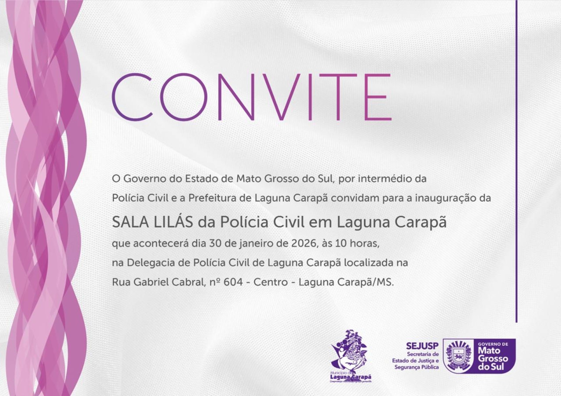 Prefeitura de Laguna Carapã inaugura Sala Lilás da Polícia Civil
