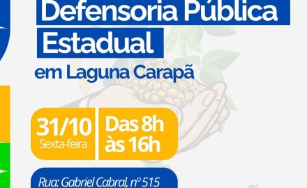 No dia 31 de outubro (sexta-feira), a Defensoria Pública Estadual de Mato Grosso do Sul estará realizando atendimentos gratuitos no município, das 8h às 16h, na Rua Gabriel Cabral, nº 515, ao lado do setor de Tributos.