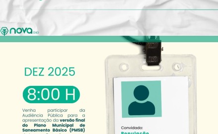 A audiência tem como objetivo apresentar os resultados da revisão do PMSB, documento que orienta as ações, investimentos e metas relacionadas aos serviços de abastecimento de água, esgotamento sanitário, manejo de resíduos sólidos e drenagem urbana. O processo de revisão do plano foi desenvolvido com base em diagnósticos técnicos, estudos atualizados e participação social.